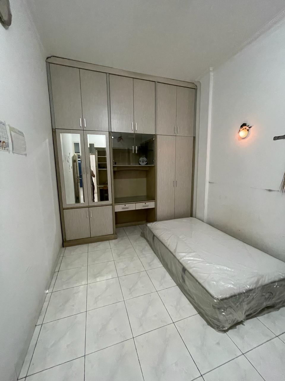 - Sertifikat = SHM - LT = 6 x 16 = 96m2 - LB = 200m2 - Kamar Tidur = 3BR + 1 - Kamar Mandi 3 - 2 Lantai - Listrik = 5,500 W - Air = PAM - Telfon = 1 Line - Furniture = Kitchen Set, Setiap kamar ada lemari dan meja belajar - Samping ada tempat jemuran = 1,5 x 16m - Garasi parkir muat 2 mobil - Hadap = Selatan - Row jalan = 2 Mobil - Posisi jalan buntu